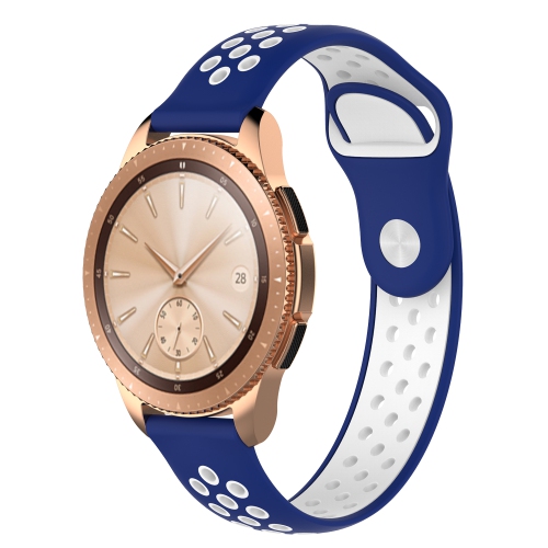 StrapsCo Perforated Silicone Rubber Watch Band Strap for Guess Connect IQ & Connect Wear OS - Blue & White