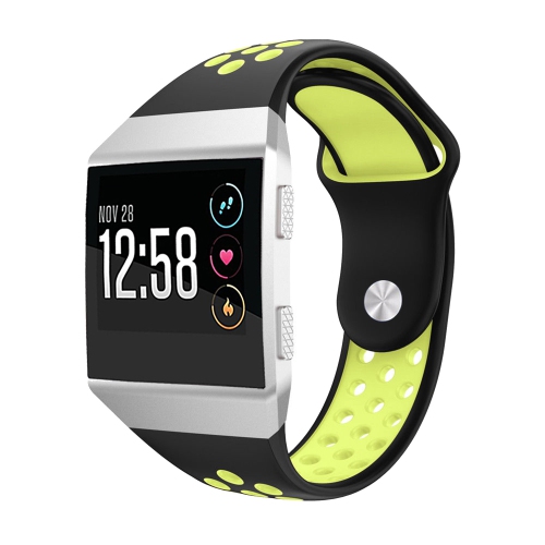 StrapsCo Perforated Two Color Silicone Rubber Watch Band Strap for Fitbit Ionic - Black & Yellow