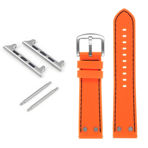 StrapsCo's premium quality aviator watch band with rivets for Apple Watch. This super soft rubber band features contour stitching as well as stainless steel rivets and buckle. This strap combines the popular look of an aviator style watch band with the ease and comfort of a waterproof silicone rubber strap. Fitted with matching removable adapter so you can wear one of our best-selling classic watch bands with your Apple Watch.