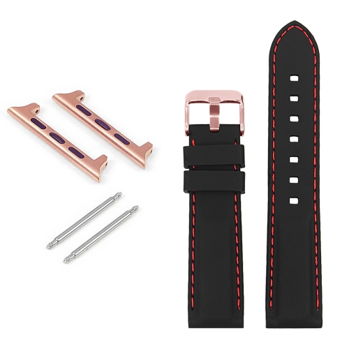 StrapsCo Rubber Strap with Stitching & Rose Gold Buckle for Apple Watch - 42mm - Black & Red