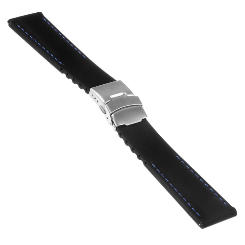 StrapsCo Rubber w/ Stitching & Clasp Watch Band Strap for Samsung Galaxy Watch 3 - 20mm - For 41mm Galaxy Watch3 - Black & Blue (Silver Clasp)
