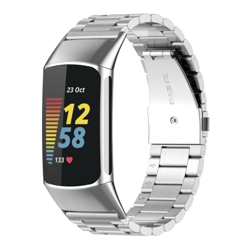 StrapsCo Two-Tone Stainless Steel Watch Strap Band for Fitbit Charge 5 - Silver