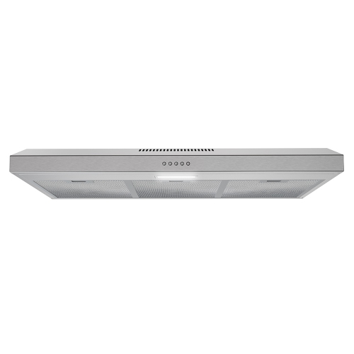 Presenting the epitome of kitchen elegance: our Streamline 36 in. Lagundo Ducted Undermount Range Hood in Brushed Stainless Steel. Utilize its dynamic 80 CFM airflow, easily customized with the 3-speed push-button control. An integrated LED light brightens your culinary workspace, while the aluminum mesh filters consistently maintain a pristine ambiance. Installation is seamlessly streamlined with the included 3-prong 120-volt power cord.