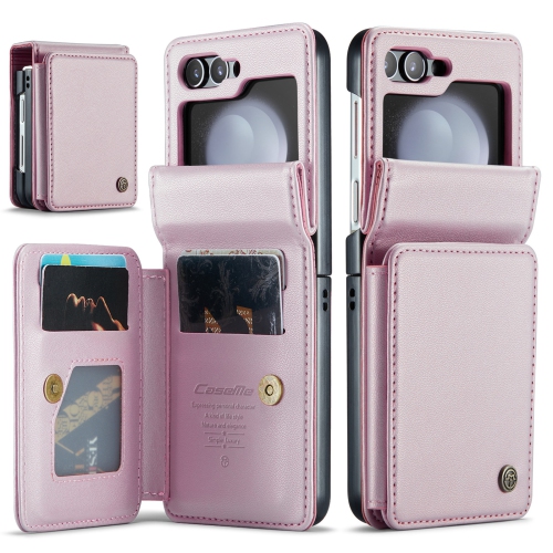 Suitable for Samsung Z Flip5 mobile phone case multi-function anti-theft card slot leather case one-piece anti-fall protective cover - pink