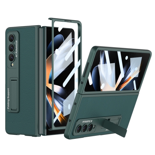 Suitable for Samsung Z fold4 folding screen mobile phone case leather plain leather bracket PC hard shell anti-fall case - [shell film] dark green