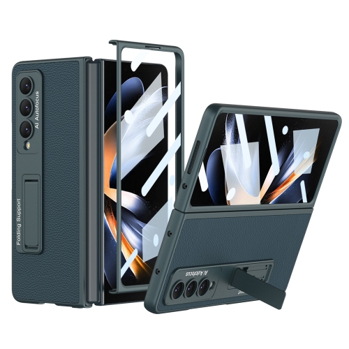 Suitable for Samsung Z fold4 folding screen mobile phone case leather plain leather bracket PC hard shell anti-fall shell - [shell film] empty mountain green