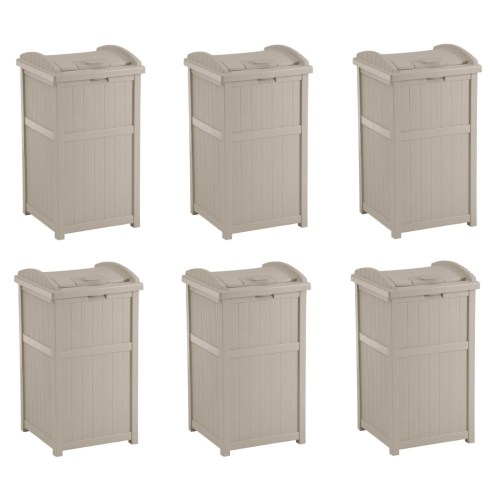 Suncast Trash Hideaway 33 Gallon Resin Outdoor Garbage Container, Taupe (6 Pack)