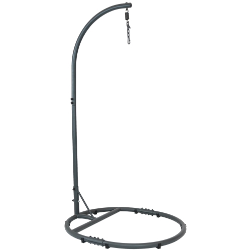 76-Inch tall hanging egg chair stand. Features powder-coated steel construction. Includes 1 stand. Use indoors or outdoors. Dimensions: 38" W x 42" D x 76" H; 33 lbs. Weight capacity: 265 lbs