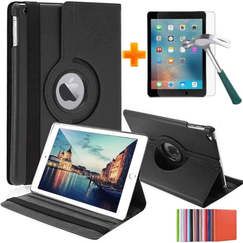 SuperShield Case for iPad 9th 8th 7th Generation 10.2 2021/2020/2019, 360 Degree Rotating PU Leather Stand Protective Case Cover with Tempered Glass Screen Protector for iPad 10.2
