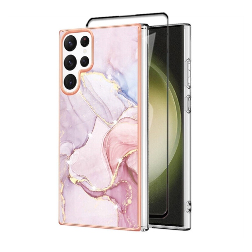 【SuperShield】For Samsung Galaxy S23 Ultra TPU Soft Case Slim Cute Men Women Lady Silicone Shockproof Protective Flower Pattern Case- Pink With Free Tempered Glass Screen Protector