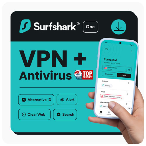 Surfshark One VPN gives your household comprehensive online security and privacy with easy access to over 4,500 high-speed servers in more than 100 locations. Enjoy five premium online protection products in one bundle and an easy-to-use app interface. Enjoy 24/7 malware and virus protection.