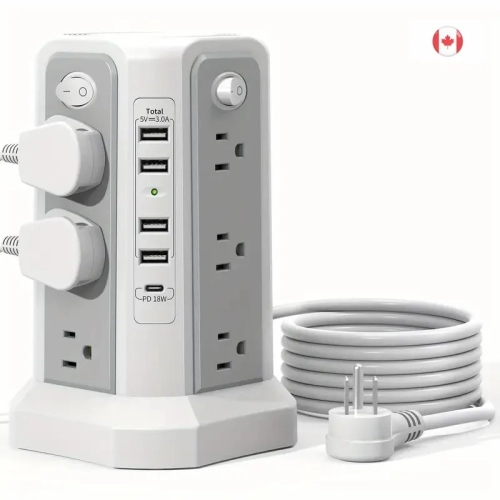 The Surge Protector Power Strip Tower is designed with 12 AC outlets, 5 USB ports, and 1 USB-C port (PD18W) to meet all your power needs. With a 10FT extension cord, this tower is perfect for home, office, or dorm rooms. It offers overload protection and is ideal for charging multiple devices simultaneously while ensuring safety.