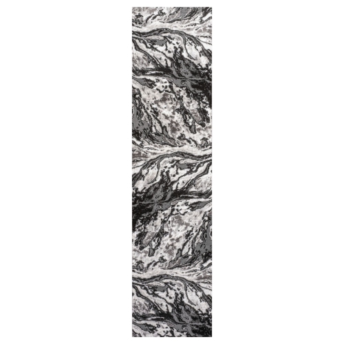 Inspired by the abstract designs of marbled papers, this bold rug has a modern, coastal vibe. Deep charcoal and gray swirl across an ivory background. This unique rug's overall pattern makes it perfect for homes with kids and pets.
