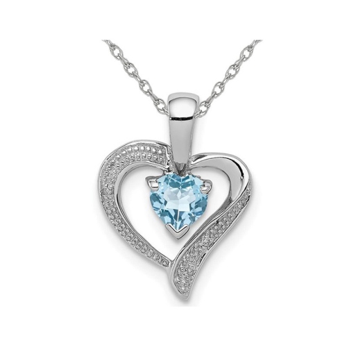 A classic heart pendant with a heart cut swiss blue topaz gemstone set in sleek sterling silver and matching silver chain.