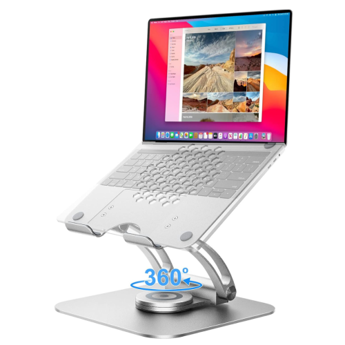Swivel Laptop Stand for Desk, Ergonomic Laptop Holder with 360° Rotating Base, Adjustable Computer Stand Laptop Riser Compatible with Air, Pro, All Laptop 10-16"