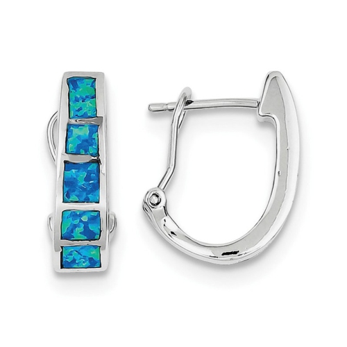 Synthetic Blue Opal Hoop Earrings in Sterling Silver