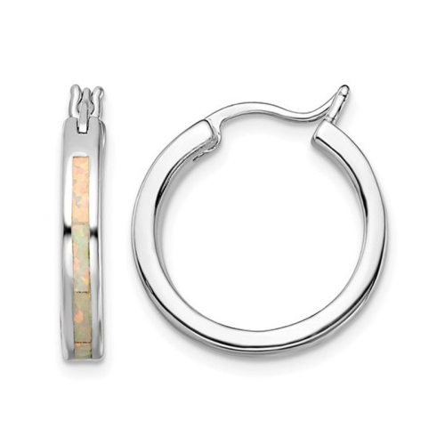 Beautiful white opals are featured in these classic hoop earrings crafted from sleek sterling silver.