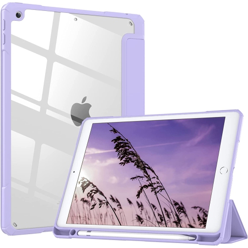 T Case for New iPad 9th Generation 2021/8th Gen 2020/7th Gen 2019 with Pencil Holder, Slim Protective Case with Clear Back Shell & Auto Wake/Sleep for iPad 10.2 Case, Taro Purple