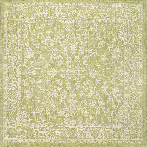 With a vine-and-border design inspired by Persian rugs, our Boho-chic rug adds eclectic style to an outdoor porch or patio. Varied tones of soft green mingled with a cream pattern give this rug a hand-woven, vintage vibe.