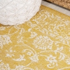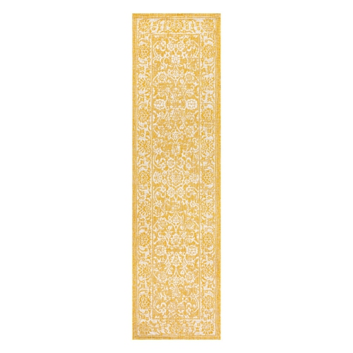 With a vine-and-border design inspired by Persian rugs, our Boho-chic rug adds eclectic style to an outdoor porch or patio. Varied tones of yellow mingled with a cream pattern give this rug a hand-woven, vintage vibe.