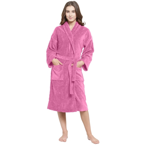 Terry Cloth Bathrobes for Women 100% Cotton Robes Soft Women Bathrobe Towel Spa Robe adult Hotel Robe Warm Bathrobe (CA/US, Alpha, Medium, Regular, Regular, Pink)