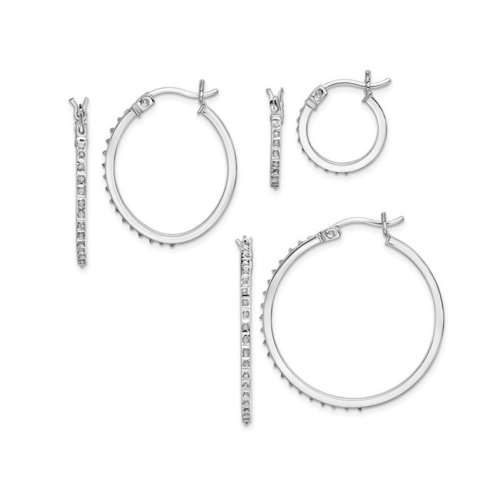 Three Pairs Diamond Accent Hoop Earrings Set in Sterling Silver