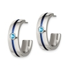 Add a touch of charm to any ensemble with these sleek, strong and unique titanium huggy hoop earrings. Featuring the birthstone of December, each earring has 3mm sky blue topaz gem bezel set at its center. This elegant and versatile pair will take you to every occasion in style. Along the center is adonized blue titanium adding extra color to this beautiful pair of earrings.