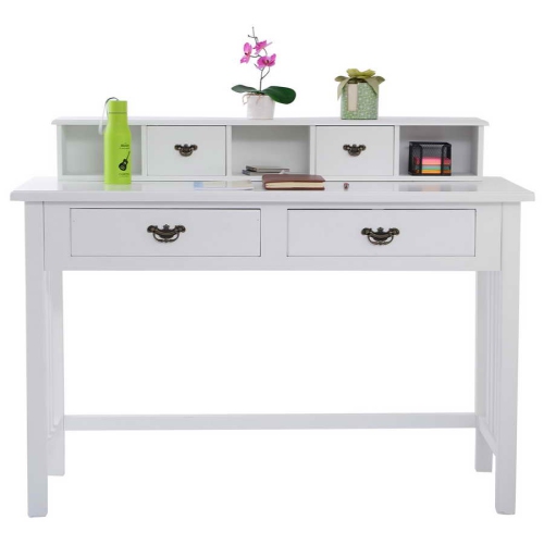 Topbuy 2-tier Writing Table Studying Desk Modern White Console Table w/ 4 Drawers