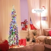 Topbuy 4/5/6FT Pre-lit Artificial Christmas Tree Snow-flocked Xmas Pencil Tree with 225/334/407 Branch Tips 100/150/250 LED Lights 2 Lighting Colors