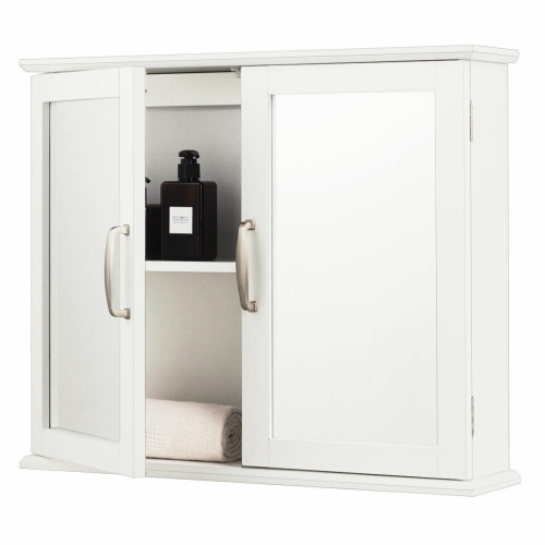 Topbuy Bathroom Mirror Cabinet Two Shelves Storage Cupboard White