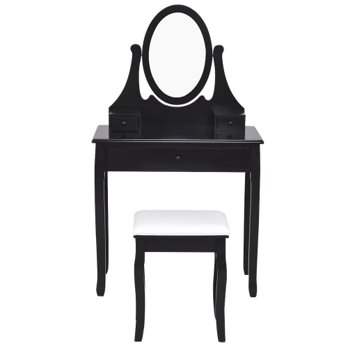 Topbuy Mirrored Dressing Table Wooden Vanity Makeup Unit w/ Cushioned Stool Black