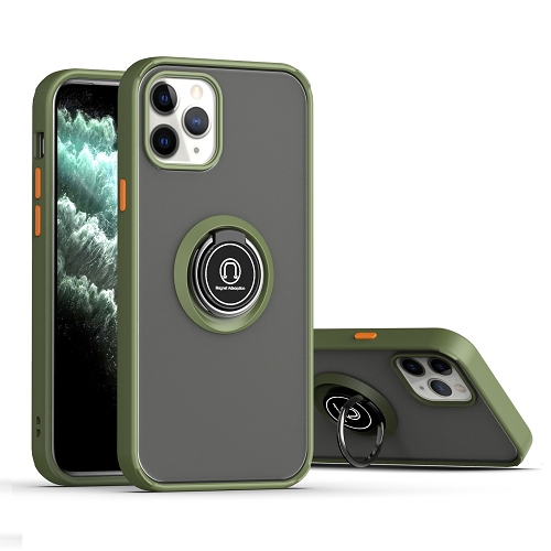 TopSave 360 Rotating Metal Ring Kickstand, Shockproof Protective Cover Rubber Hybrid Matte Clear Case For iPhone 13 Pro Max (6.7"), Green