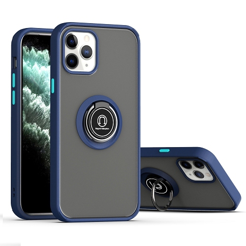 TopSave 360 Rotating Metal Ring Kickstand, Shockproof Protective Cover Rubber Hybrid Matte Clear Case For iPhone 13 Pro Max (6.7"), Navy Blue