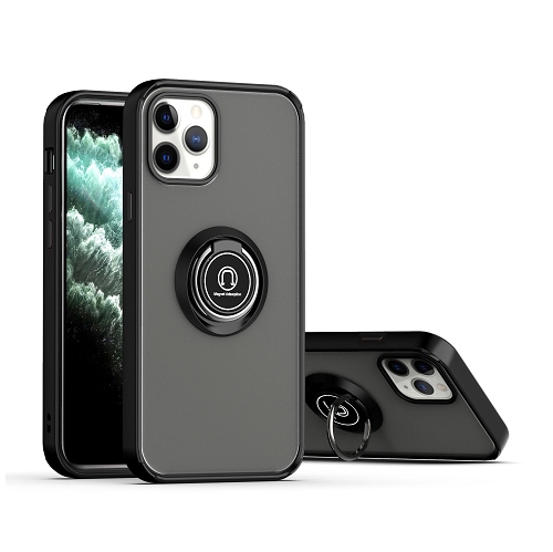 TopSave 360 Rotating Metal Ring Kickstand, Shockproof Protective Cover Rubber Hybrid Matte Clear Case For Samsung iPhone 12, 12 Pro 5G 6.1", Black
