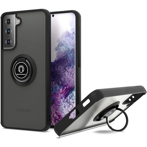 TopSave 360 Rotating Metal Ring Kickstand, Shockproof Protective Cover Rubber Hybrid Matte Clear Case For Samsung S21 Plus 5G 6.7", Black