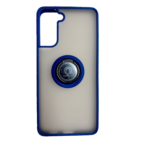 TopSave 360 Rotating Metal Ring Kickstand, Shockproof Protective Cover Rubber Hybrid Matte Clear Case For Samsung S21 Plus 5G 6.7", Navy Blue