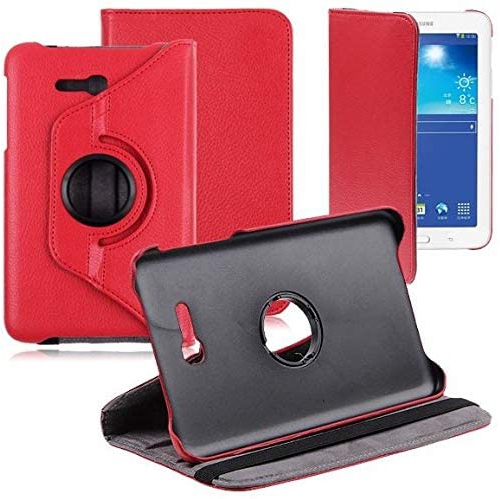 TopSave 360 Rotating PU Leather Tablet Case For Samsung Tab 3 Lite 7"(2014) E Lite 7"(2016) T110/T113, Red