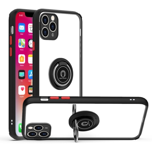 TopSave Clear Hard Acrylic Shell Cover, Hybrid Ring Back Case For iPhone 11 Pro, Black Red