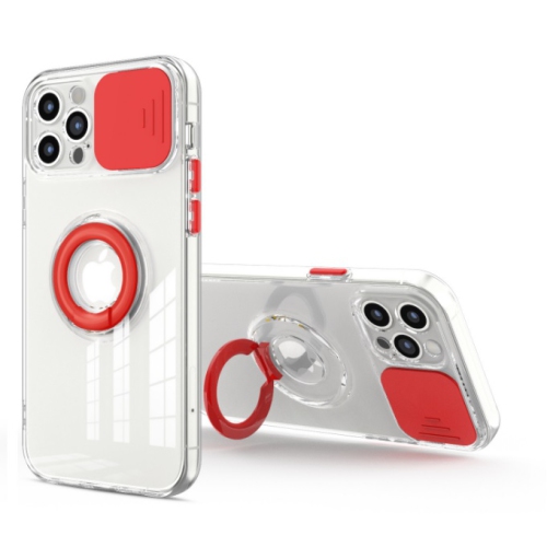 TopSave Colorful Sliding Window Camera Lens Protective Clear TPU Phone Case w/ Ring Holder Stand Cover For iPhone 12 Pro Max 6.5", Red