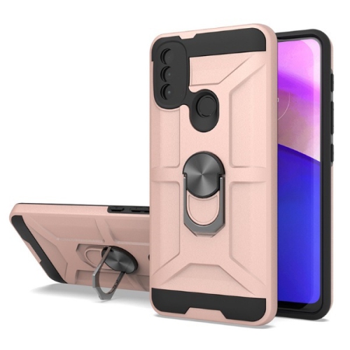 TopSave Dual Layer Hybrid Cover Case w/360 Degrees Rotating Ring Stand For Motorola Moto G Pure 6.5", Rose Gold
