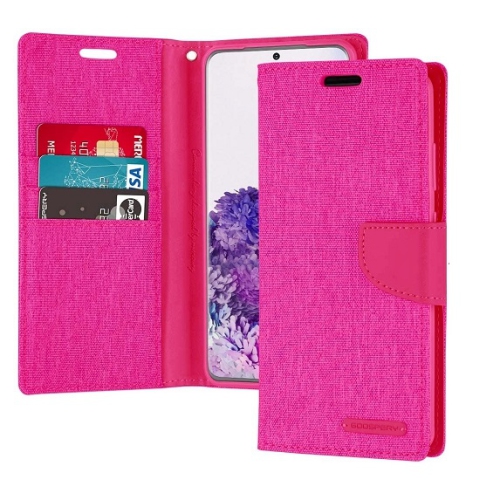 TopSave Goospery CANVAS Card Holder Fabric Folio Wallet Flip Case For iPhone 16 Plus (6.7") - color Pink