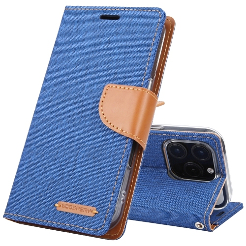 TopSave Goospery CANVAS Card Holder Fabric Folio Wallet Flip Case For iPhone 16 Pro (6.3"), Blue