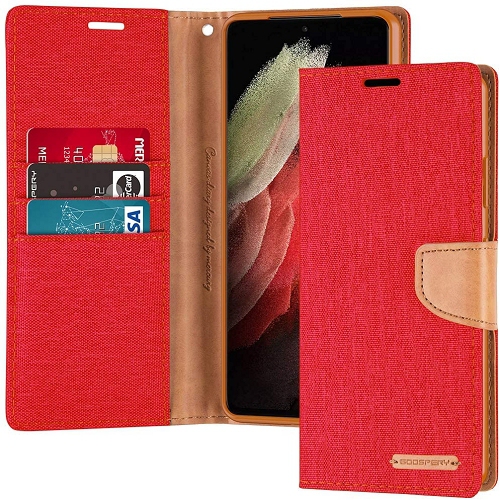 TopSave Goospery CANVAS Card Slot Fabric Folio Wallet Flip Case For Samsung S21 (6.2"), Red