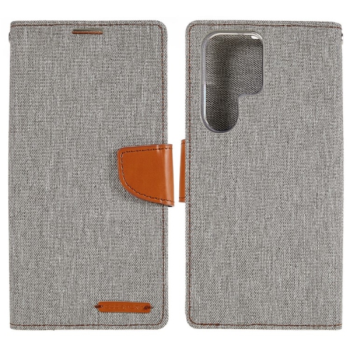 TopSave Goospery CANVAS Card Slot w/Magnetic Clip Denim Cloth Folio Wallet Flip For Samsung Galaxy S23 Ultra 6.8" 5G, Gray