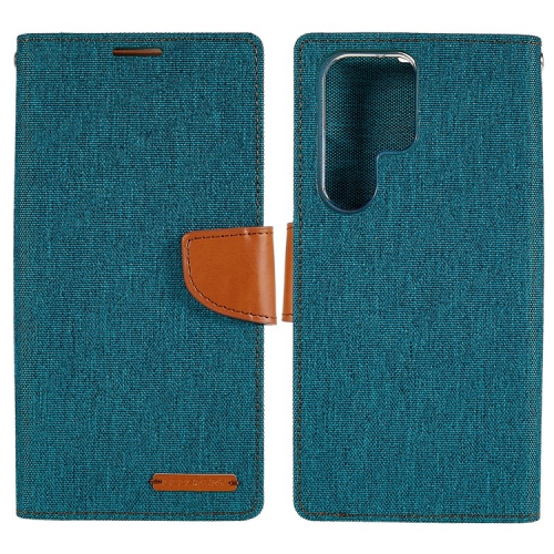 TopSave Goospery CANVAS Card Slot w/Magnetic Clip Denim Cloth Folio Wallet Flip For Samsung Galaxy S23 Ultra 6.8" 5G, Green