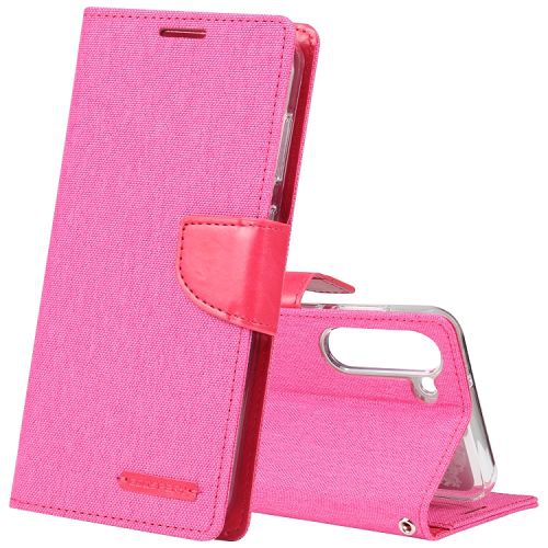 TopSave Goospery CANVAS Card Slot w/Magnetic Clip Denim Cloth Folio Wallet Flip For Samsung Galaxy S24 6.2", Pink