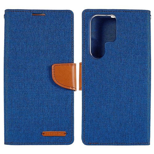 TopSave Goospery CANVAS Card Slot w/Magnetic Clip Denim Cloth Folio Wallet Flip For Samsung Galaxy S24 Ultra 6.8", Blue