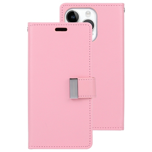 TopSave Goospery Rich MAX(5) Card Slot Leather Folio Wallet Flip Case For iPhone 16 Pro (6.3"), Baby Pink