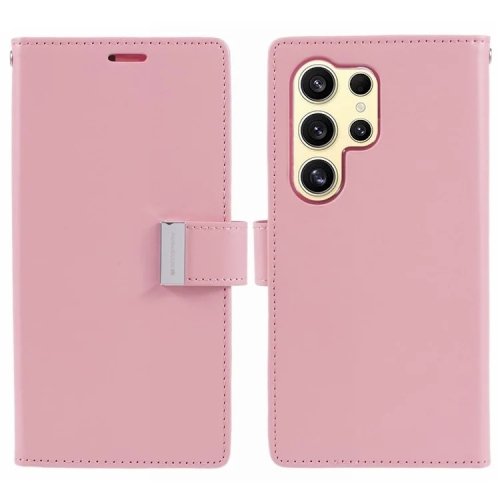 TopSave Goospery RICH MAX(5) Card Slot w/Magnetic Clip Leather Folio Wallet Flip For Samsung Galaxy S25 Ultra 6.9-inch, Baby Pink