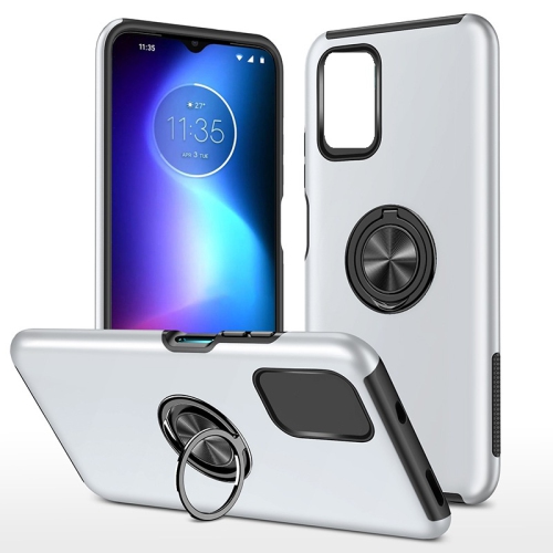 TopSave "Hidden Series" Solid Color PC Back Combine w/Inner Black TPU Bumper Kickstand Armor Case For Motorola Moto G Power 5G(24) (6.7"), Silver